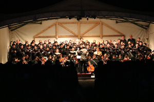 板東俘虜収容所の姿を平和のシンボルとして世界に発信するため、初演の時刻に合わせて演奏会が開催されました。